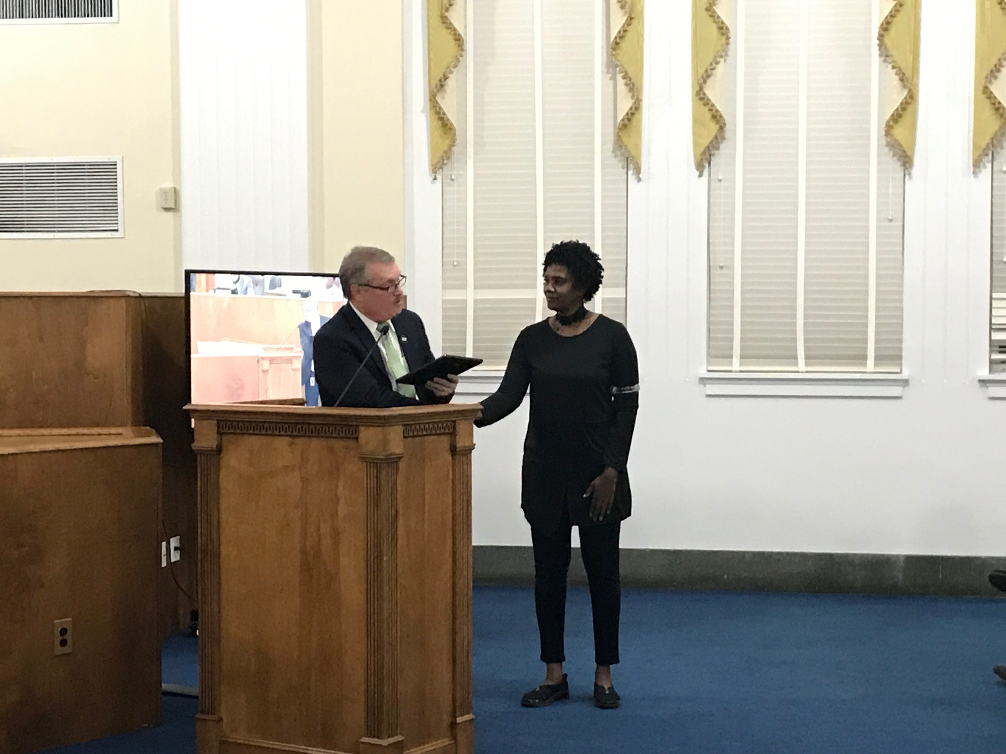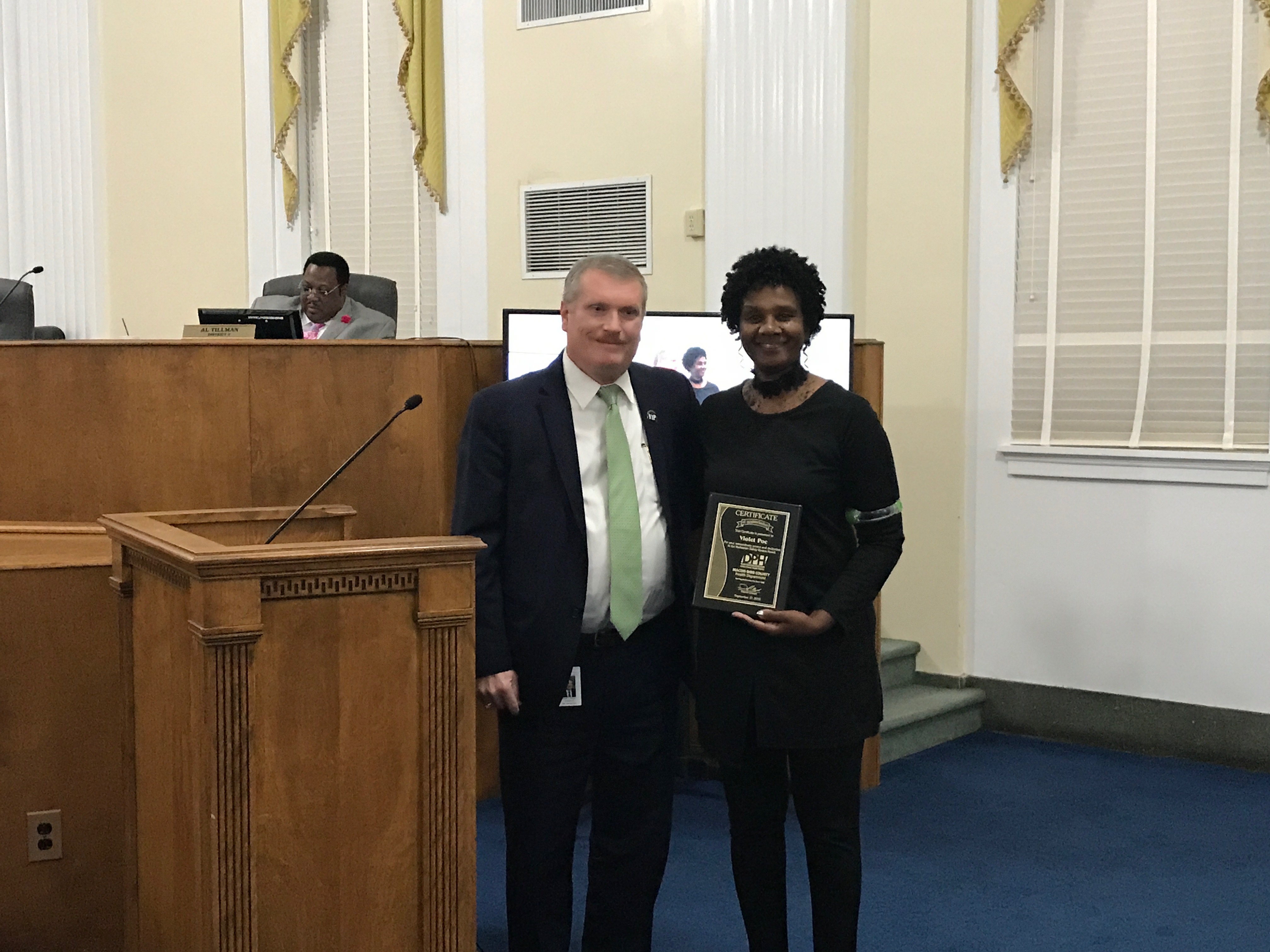 David Gowan, Director of Risk Management for the Bibb County School System, presented an award to Violet Poe for her work on the Pedestrian Safety Review Board. Visit the PSRB website here to learn more about their mission and how they’re working to keep drivers, cyclists, and pedestrians safe in our community.