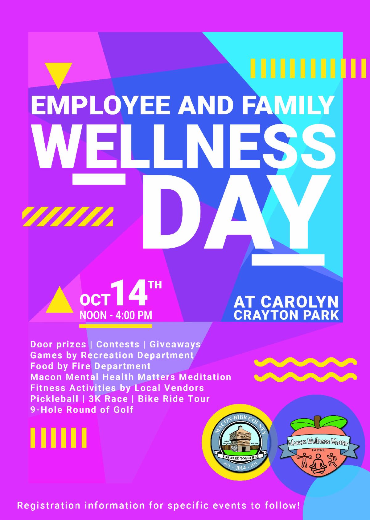 In a continued effort to support employees in their mental and physical wellness goals, the Macon-Bibb Human Resources Department is holding an Employee Wellness & Mental Health Awareness Day on Friday, October 14. The events are open to Macon-Bibb County consolidated government employees and their families.