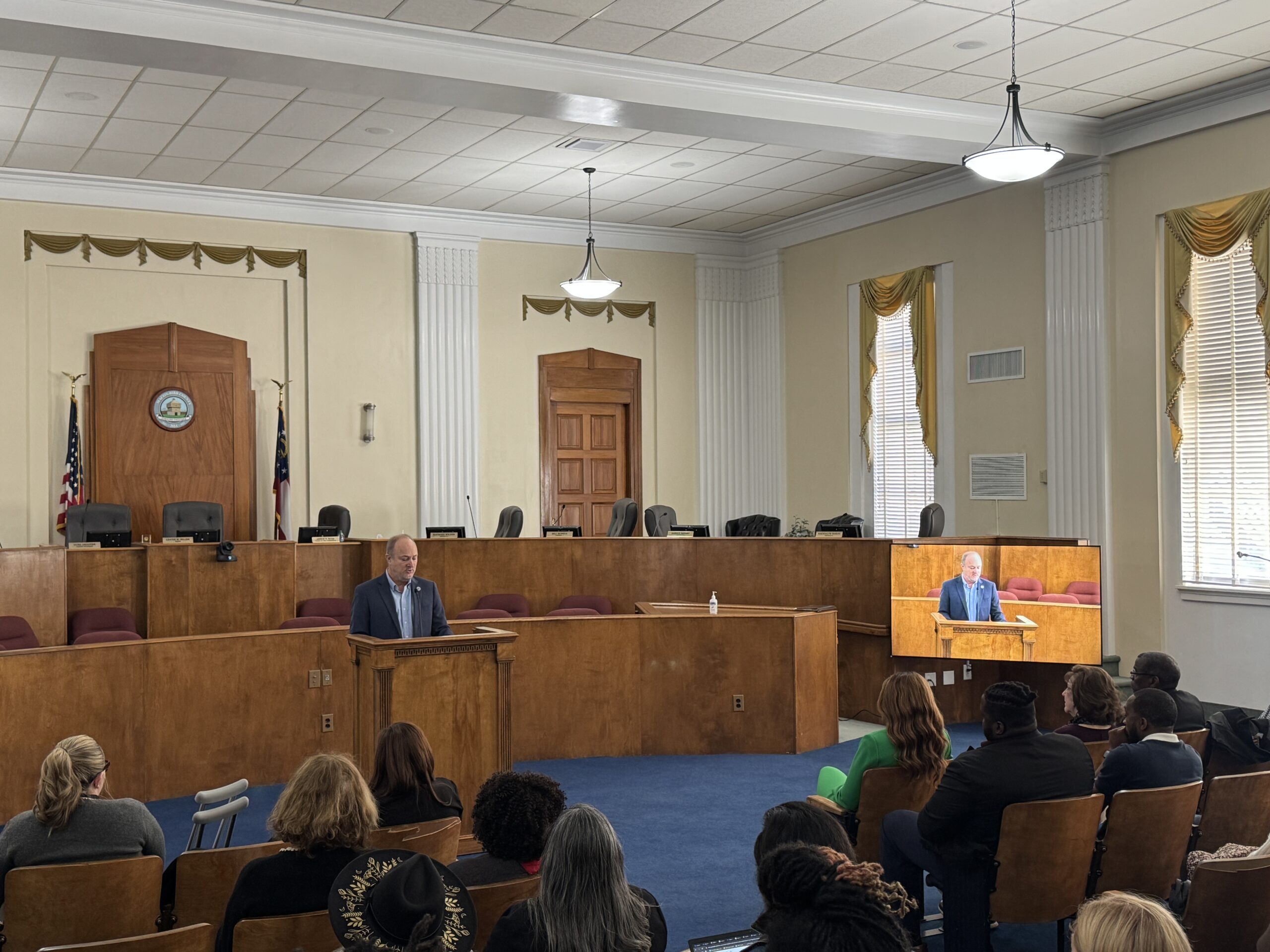 The passion for the people of Macon-Bibb County and their safety was on full display as Mayor Lester Miller addressed a crowd of more than 75 people in Commission Chambers at City Hall about the decrease in the homicide rate and efforts to continue that progress.