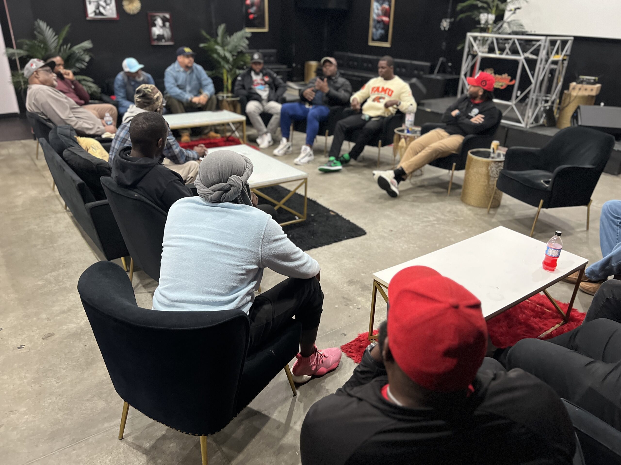 With a light mist in the air outside after an overcast and rainy day, 17 men gathered in a circle in the middle of Serenity Entertainment Complex on Poplar Street for the monthly Men’s Mental Health Meet-up.