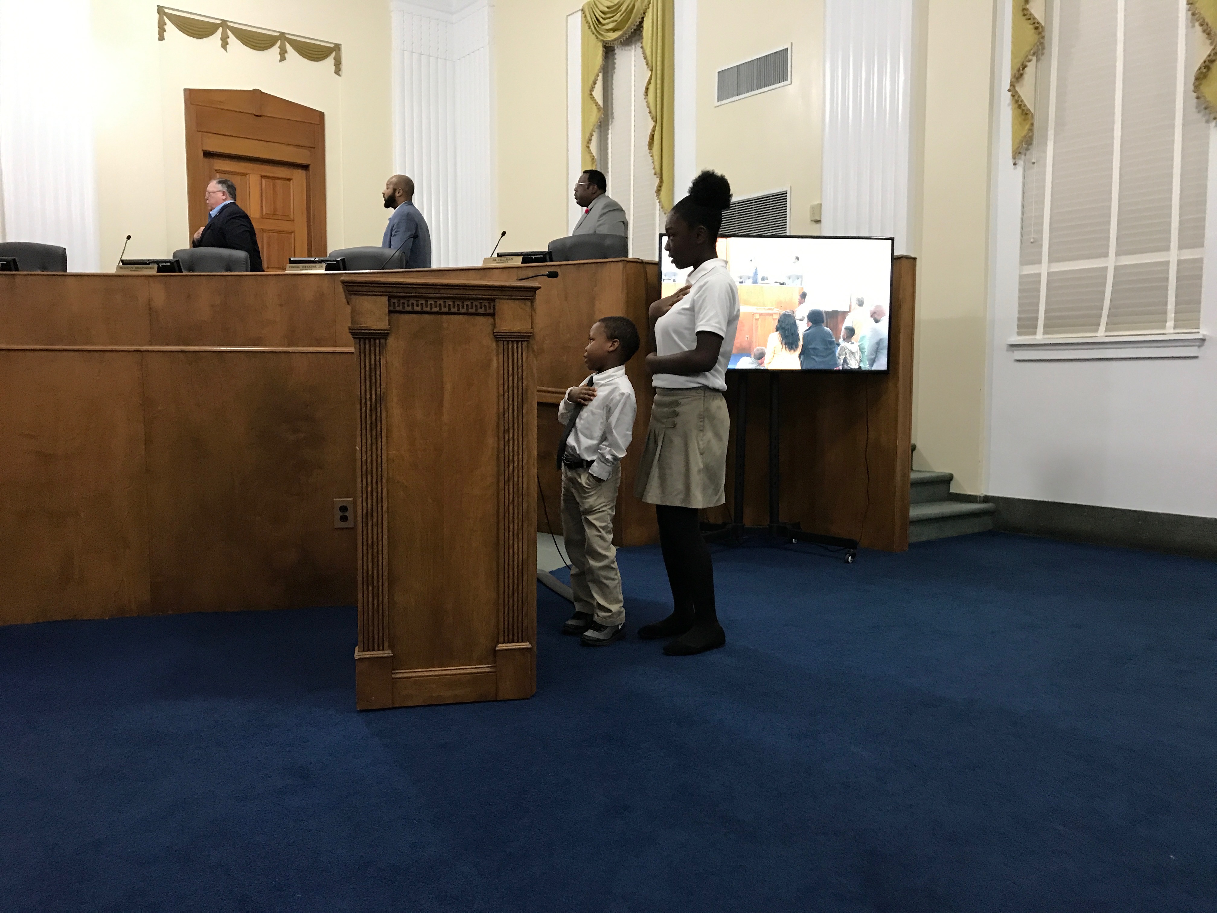 Two local students who are members of S.M.A.R.T. (South Macon Arts Revitalization Technology) delivered the pledge. Thank you to Shundriel Miles and Tyreke Bowman for leading the room in the pledge.