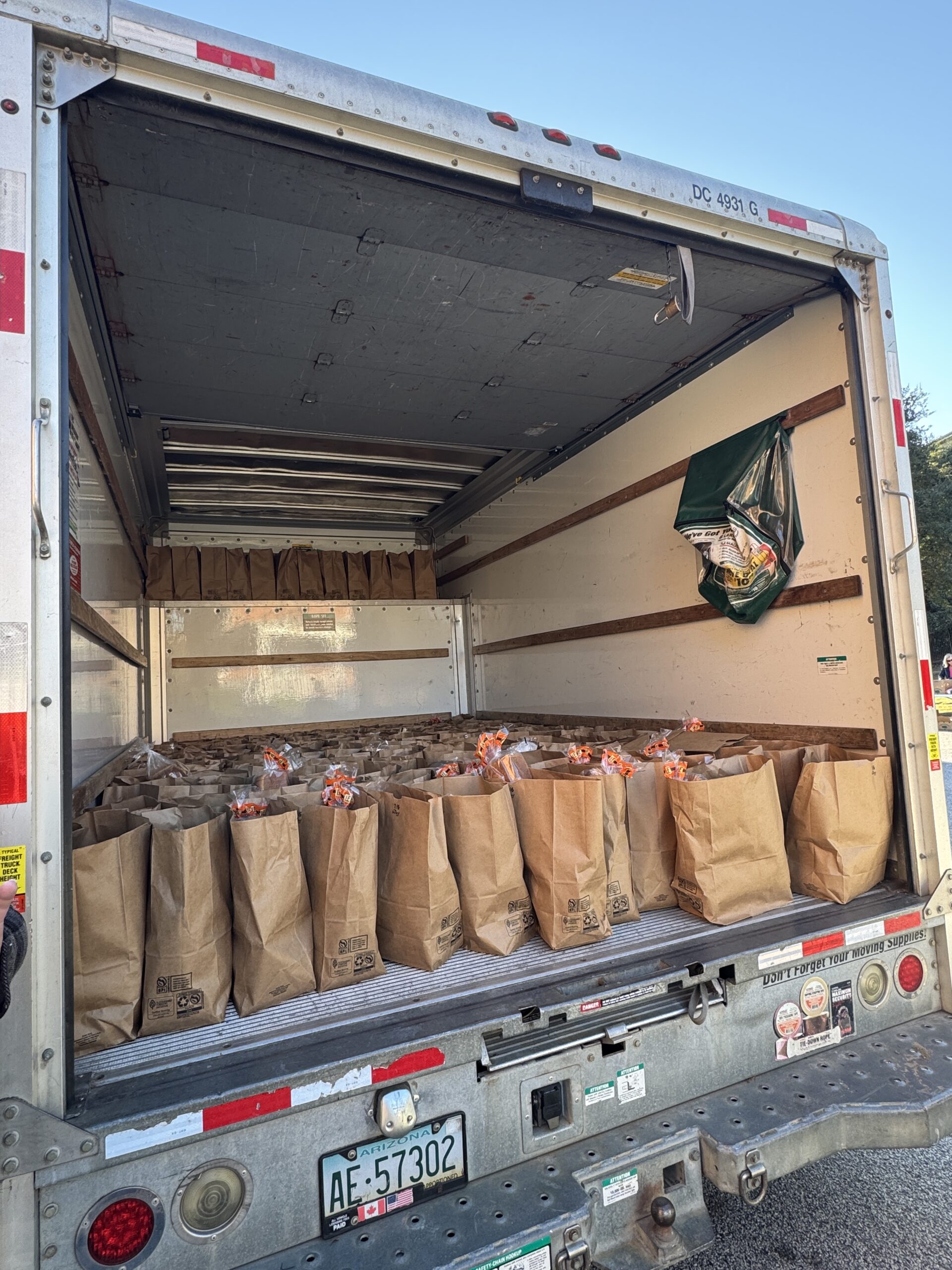 On Wednesday, November 12, more than 600 people and families in our community picked up turkeys, fresh produce, and side items to help keep their pantries and refrigerators stocked for the holidays. The food giveaway was hosted by the St. Vincent de Paul Food Pantry at St. Peter Claver, with some financial support from Macon-Bibb County.